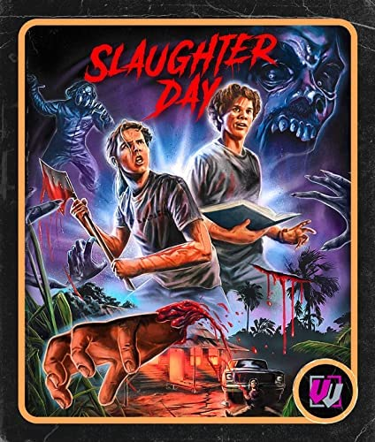 I blame this entirely on WildEye Releasing's subsidiary label Visual Vengeance which sprang into existence this year; belched forth from the crypt of SOV ghoulishness and has just been hitting it out of the park with each release! And the releases have been coming fast and furious; over half a dozen already and more to come! Probably my very favourite Visual Vengeance release is coming up later in this Halloween Countdown. But here we have the wonderful SLAUGHTER DAY; shot on S-VHS somewhere in Hawaii by the (obviously bonkers) Cousins twins Brent and Blake. No, not bonkers. Actually, guys who really know how to make a no-budget backyard movie with absolutely NO lulls and boring bits. In fact, from the first minute of SLAUGHTER DAY, the action ramps up and never really stops until the almost-an-hour running time is over. The fight scenes are almost continuous and are inventively shot and the guys on screen have more high energy than the Energizer Zombie! The median age of these guys is around 20 years old and they're all in good physical shape so they throw kicks and punches and wrestle around with seemingly limitless enthusiasm. The (of course) practical gore effects are wonderfully fun and actually work very well. The story . . . well, I guess there's a story but who really cares?!?!!